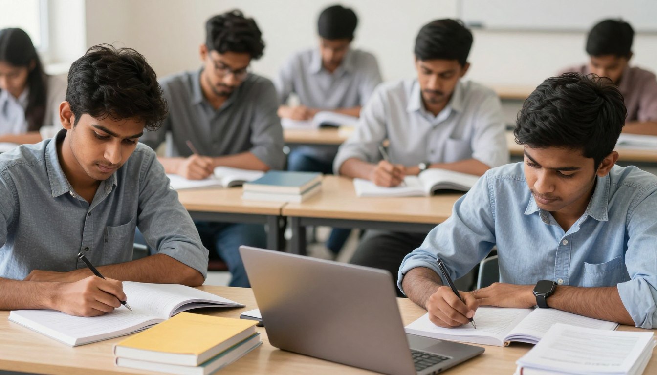 Students studying at best coaching for JEE near me in modern classroom